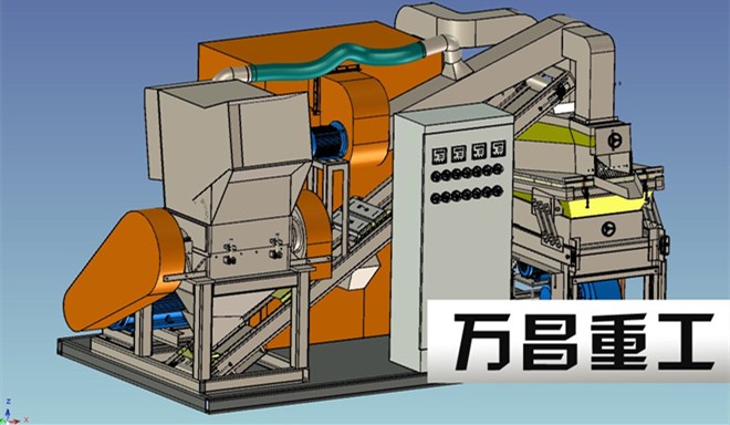 該機(jī)組針對(duì)各種電線電纜,家用電器線,通訊線,電腦線等剝線機(jī)不宜加工的廢線,大小線不用分類就可以同時(shí)破碎,實(shí)現(xiàn)各種廢線金屬和塑料的干式分離回收。具有生產(chǎn)量大,耗電少,分選率高,一次投料,多機(jī)協(xié)作完成(粉碎、輸送上料、吸塵和干式分離),全自動(dòng)智能控制,只需一人投料即可生產(chǎn),以及先進(jìn)的集塵裝置。既提高了回收銅的質(zhì)量,又可將塑料回收再利用,同時(shí)解決了環(huán)境的污染。