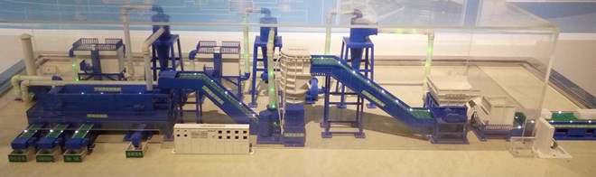 廢銅鋁散熱器再利用生產(chǎn)線采用物理破碎分選再利用方式,首先物料通過(guò)一破機(jī)進(jìn)行粗破碎,再到二破機(jī)進(jìn)行粉碎,粉碎成3cm大小的物料經(jīng)過(guò)磁選分選出鐵,再到氣流分選中進(jìn)行風(fēng)選。結(jié)構(gòu)新穎,外形美觀、獨(dú)特,產(chǎn)能大;全線由PLC程序控制,一次投料,多機(jī)完成;設(shè)有自動(dòng)停機(jī),超載自動(dòng)報(bào)警裝置。該處理線的成功開(kāi)發(fā),大大地解放了生產(chǎn)力,提高了金屬的再利用質(zhì)量,同時(shí)又再利用了鐵的優(yōu)點(diǎn),重要地是在處理過(guò)程中有效地解決了粉塵的溢出,減少了對(duì)空氣的污染。